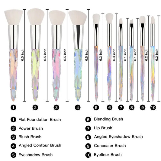 10Pcs Crystal Eyebrow Shadow Lip Pencil Blush Cosmetic Brushes