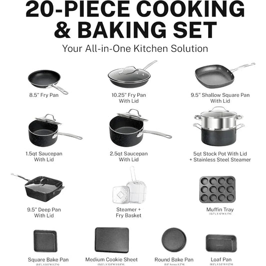 20 Pc Kitchen Pots and Pans Set Non Stick Cookware Set,