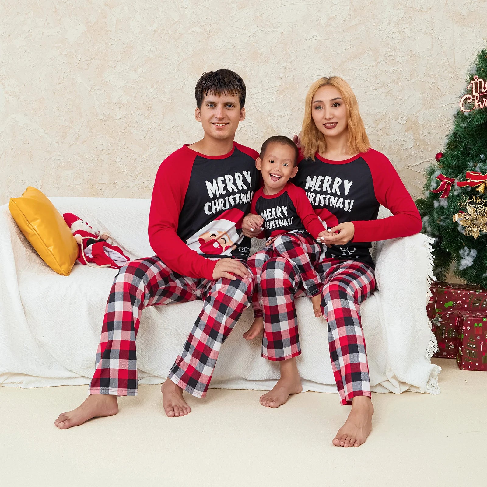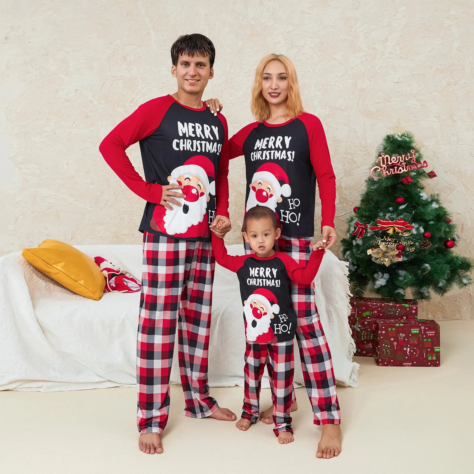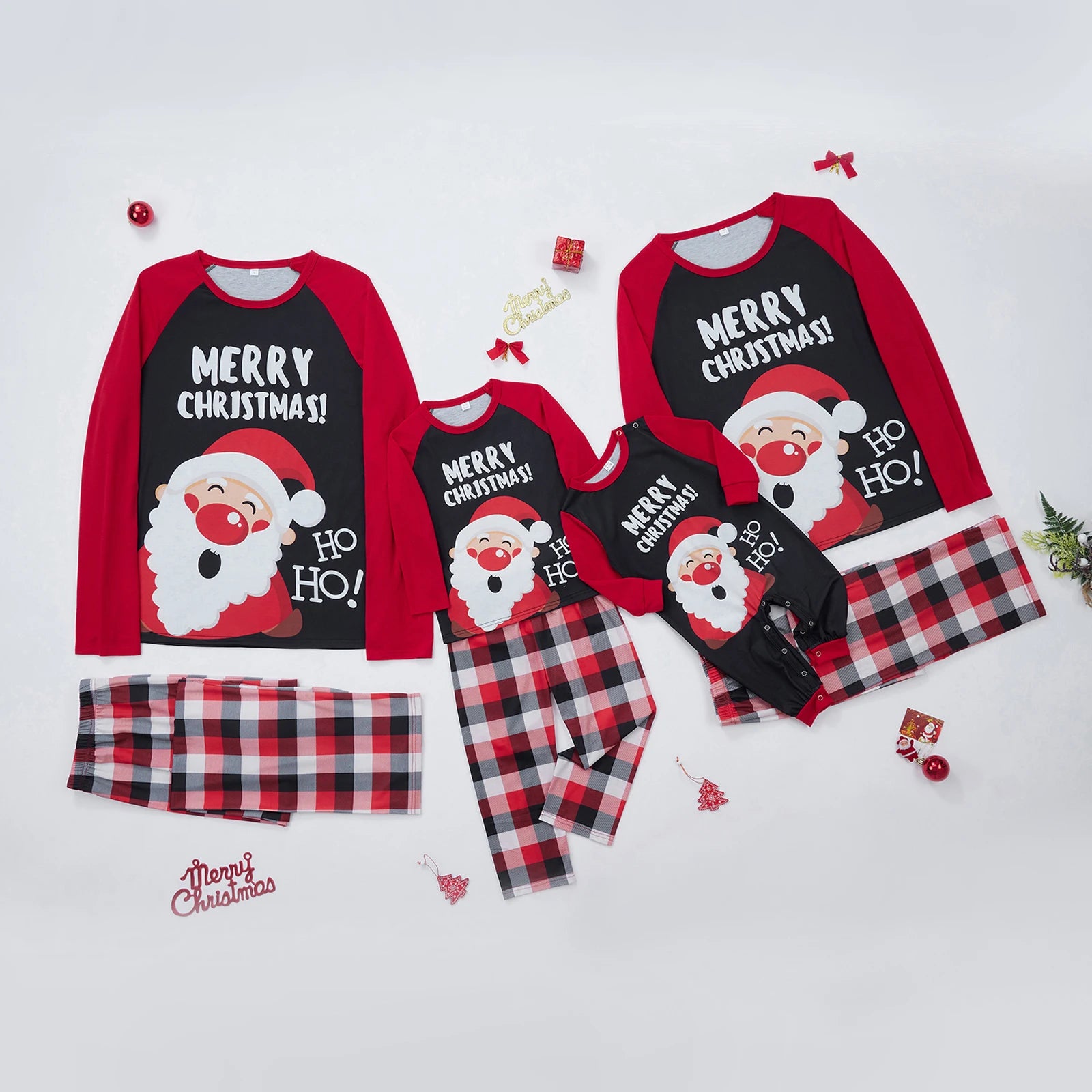 Christmas Family Matching Pajamas Adult Kids Santa and Casual Plaid Pants Sleepwear