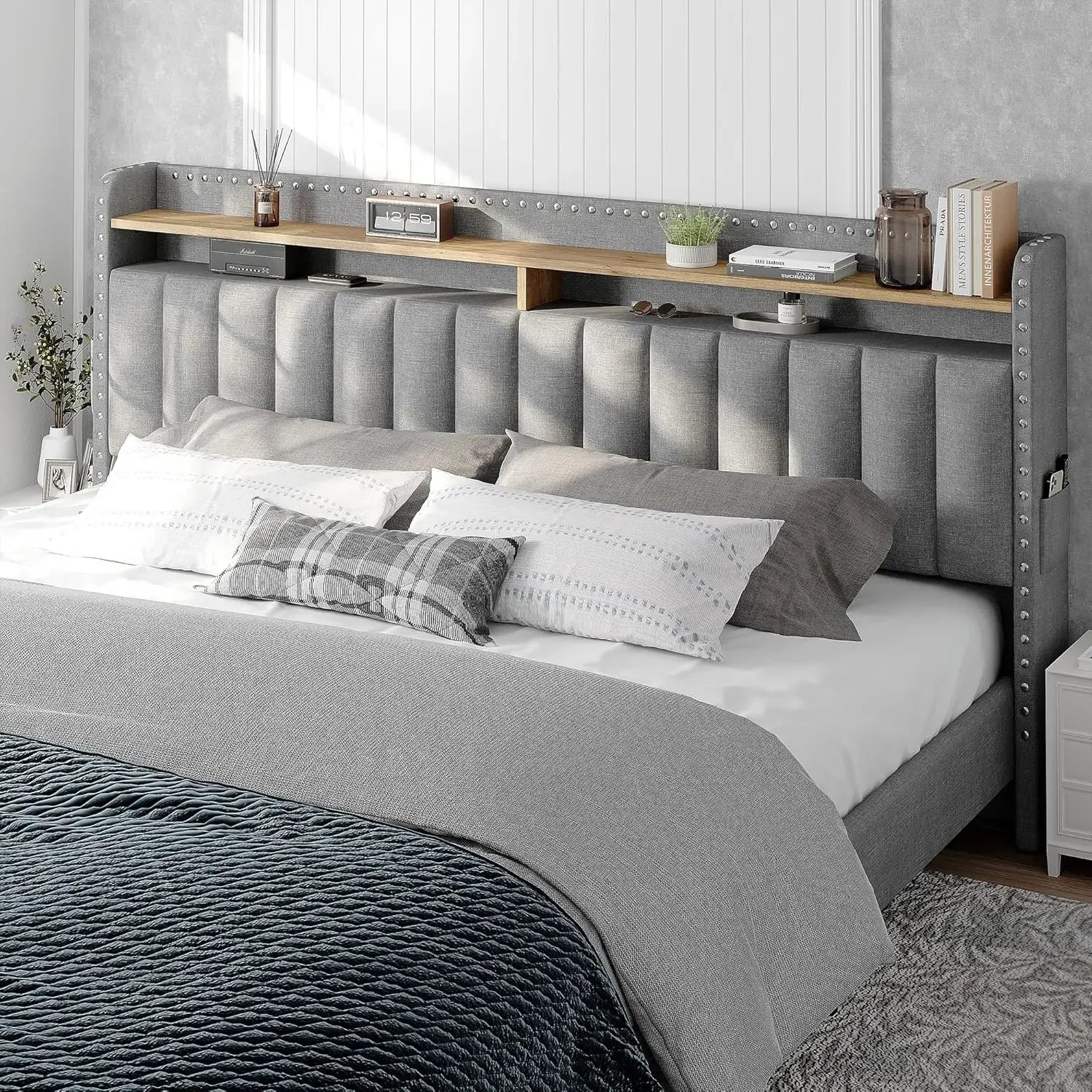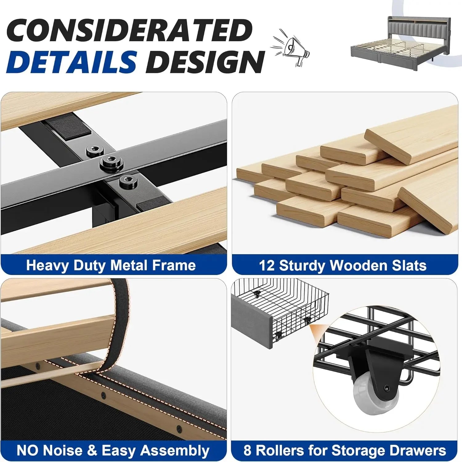 King Size Bed Frame with Storage and Headboard, with 2 Draw