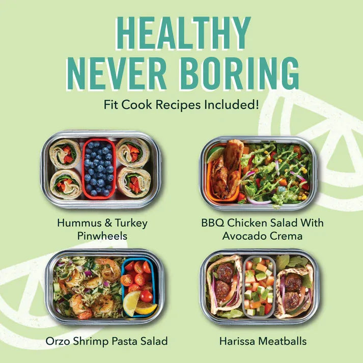 Includes: Stainless Steel Lunch Box, Silicone Insert, and Cook Recipes