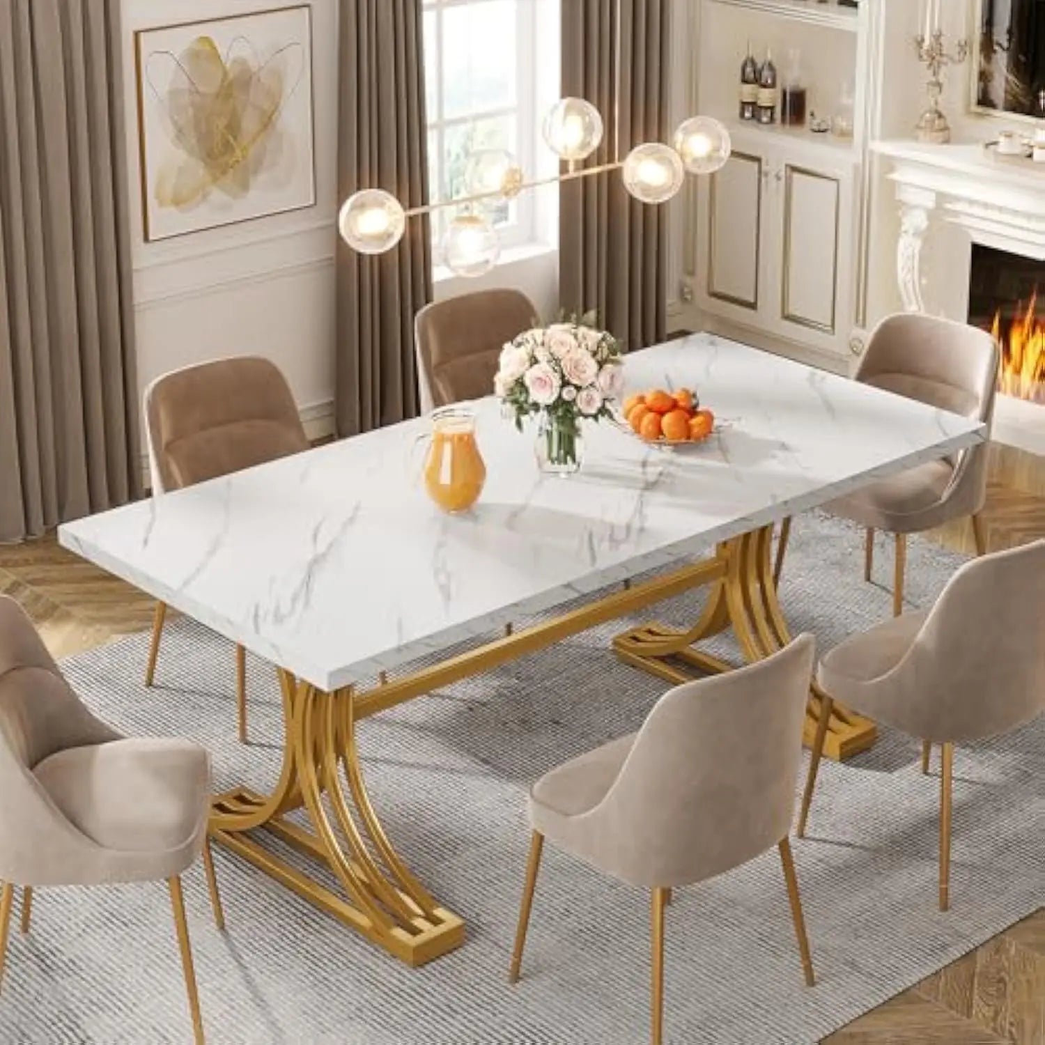Rectangular Dining Table Modern Kitchen with Stylish Metal Legs, Large Dinner Tables for Dining Room
