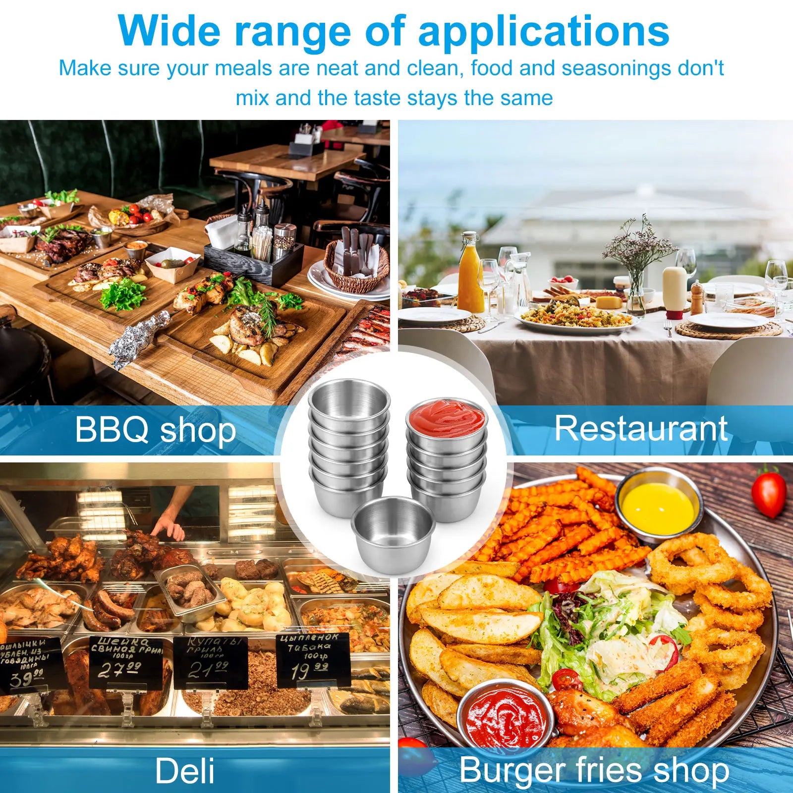[Quality 304 Stainless Steel Material] This sauce dipping bowl is made of high quality 304 stainless steel material, compared with plastic and ceramic dipping cups, stainless steel is stronger, heat resistant, will not break or rust, and effortless to clean and can be used for a long time.