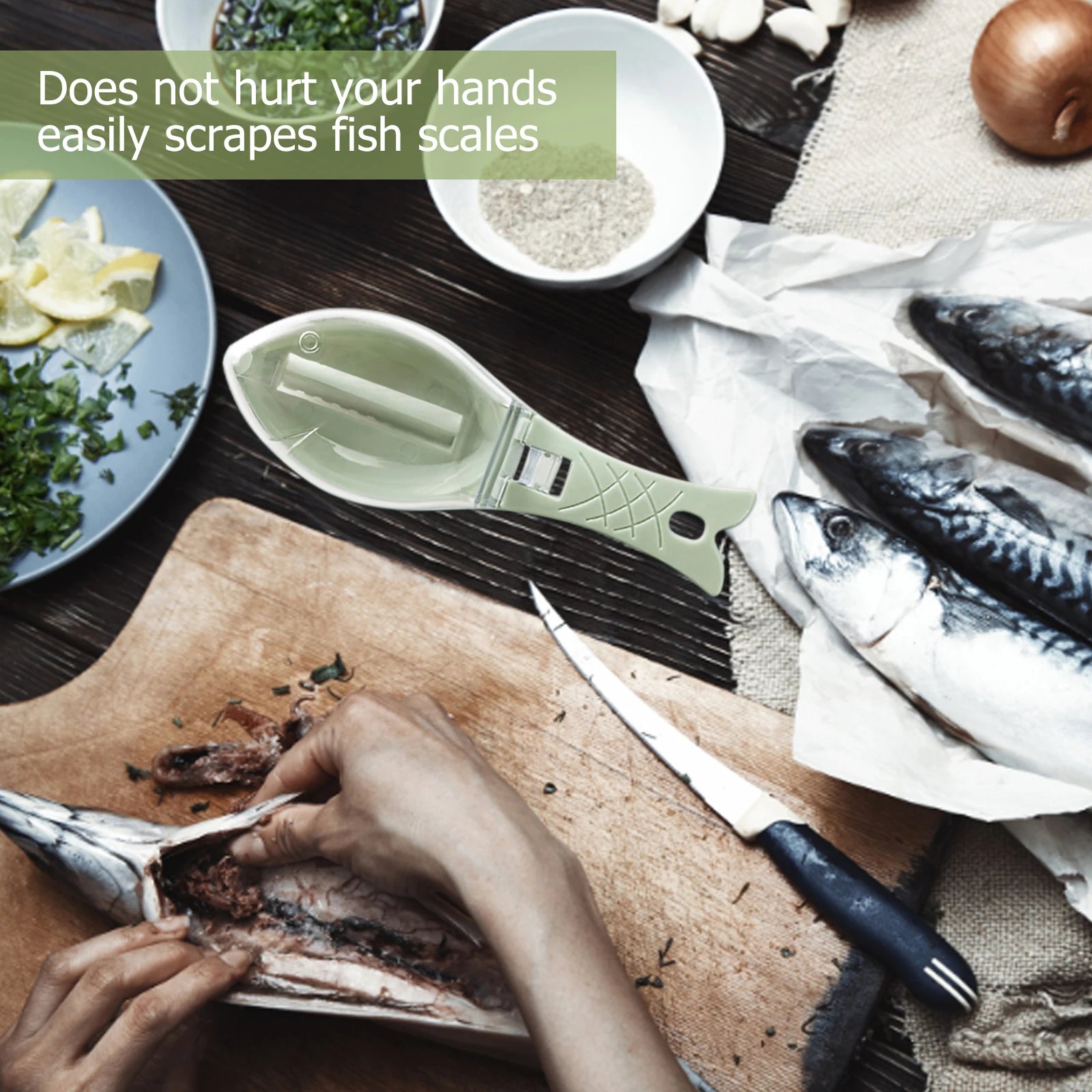 The cover design is adopted, when the fish scales are pulled out, the fish scales will not be scattered, and the operation is convenient.
