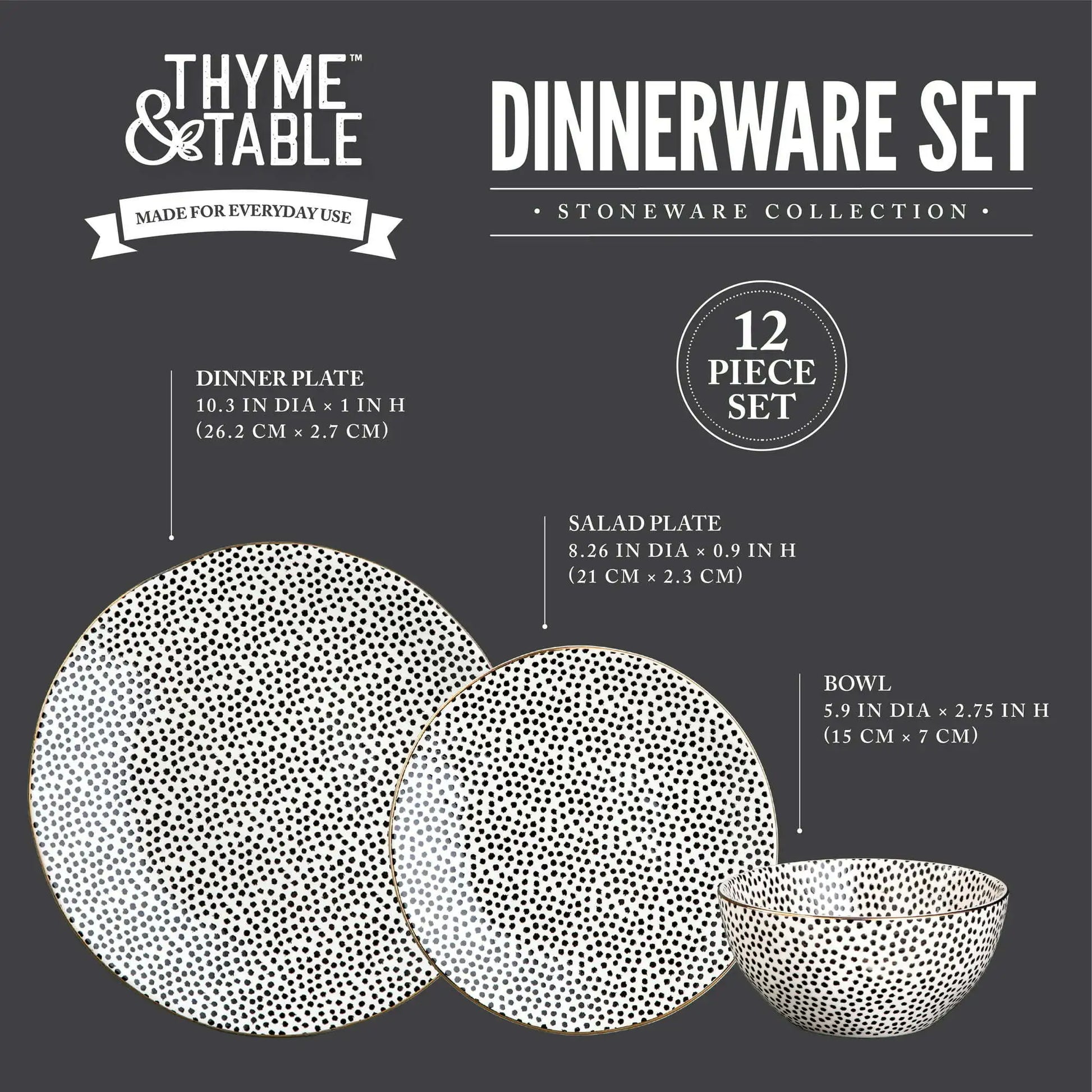 Thyme & Table Black & White Dot Stoneware Dinnerware Set; Add a touch of elegance to your dining experience with the Thyme & Table Black & White Dot Stoneware Dinnerware Set. Elevate your table setting with this modern and versatile dinnerware set, ideal for any kitchen or dining room. Whether you're hosting a dinner party or enjoying a family meal, the Thyme & Table Black & White Dot Stoneware Dinnerware Set is sure to impress.