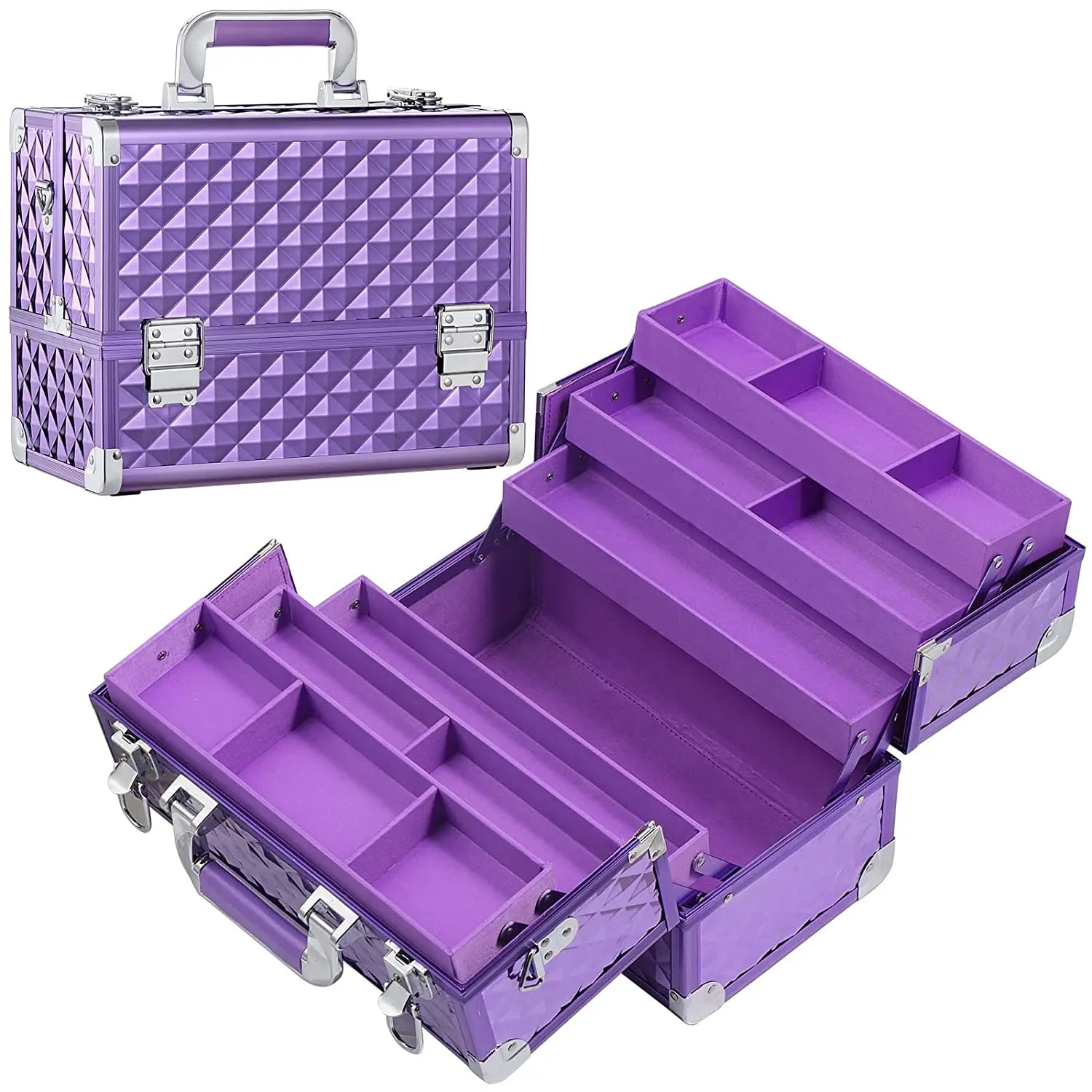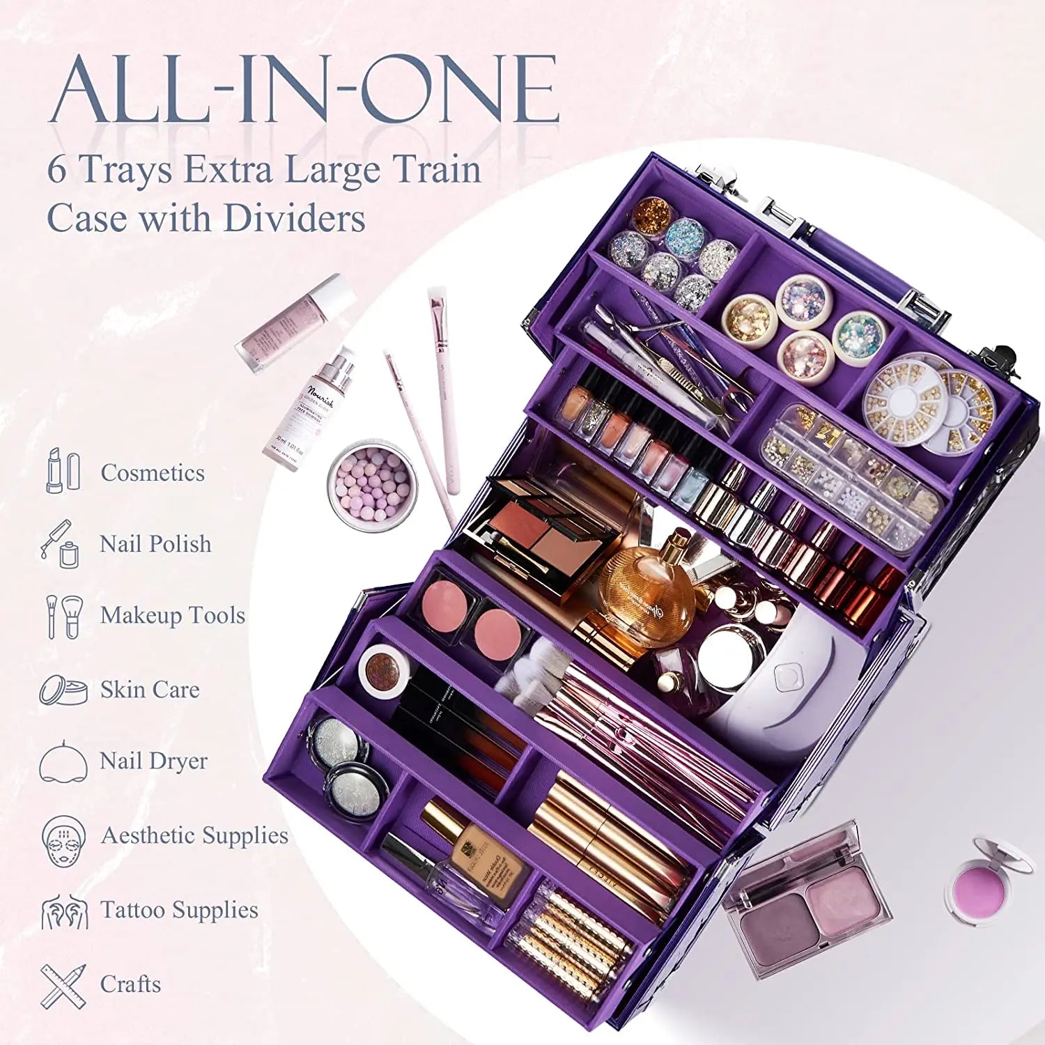 Train Case Extra Large Organizer Box 6 Trays with Shoulder Strap Travel Make Up