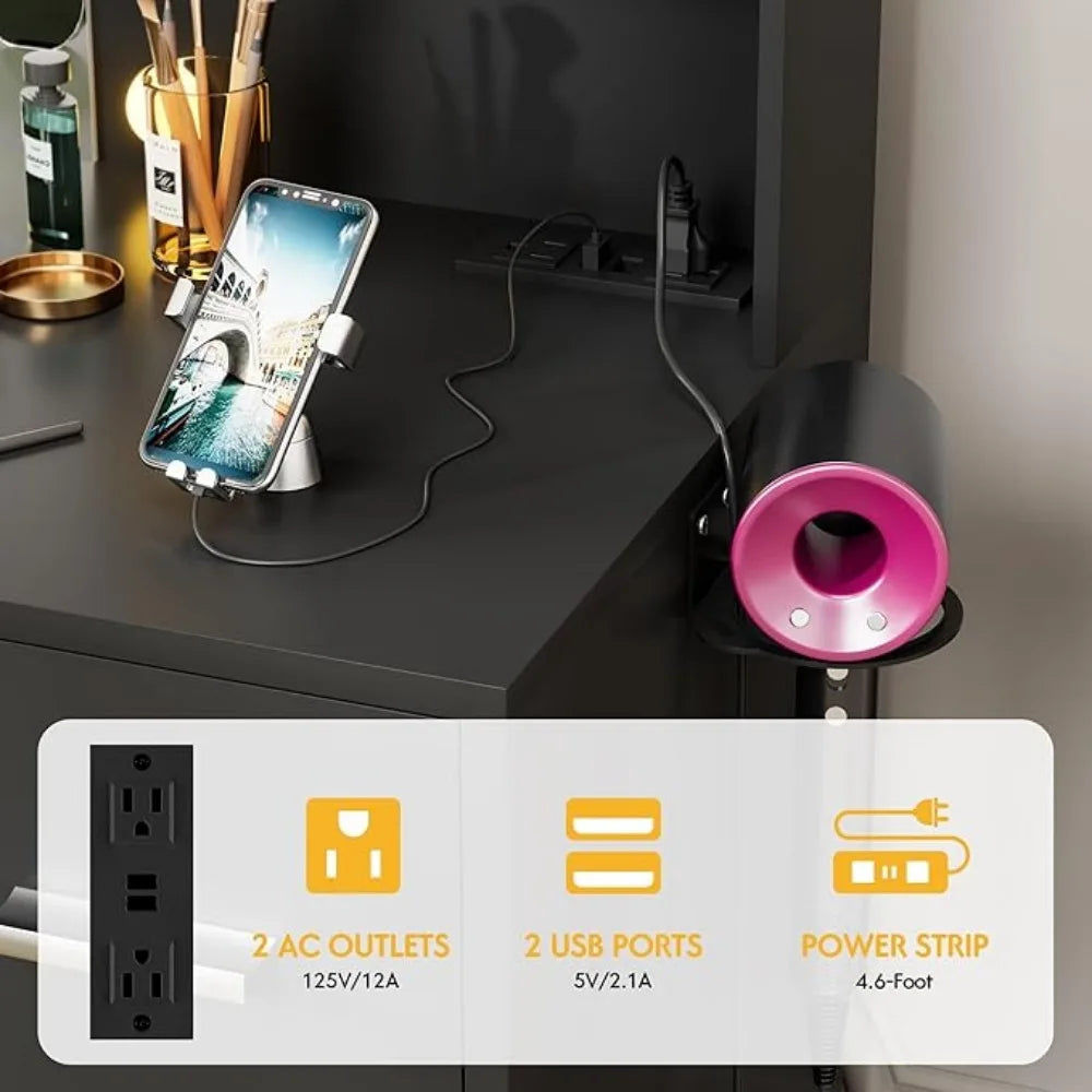 Vanity Desk with LED Lighted Mirror&Power Outlet 3 Model Lights Makeup Table